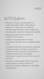 Хітозан+ очищує організм на клітинному рівні, знижує рівень ліпідів і цукру в крові, підтримує імунітет, нормалізує вагу та кислотно-лужний баланс.