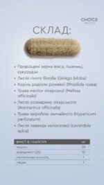 «Інтелект» — це фітокомплекс для покращення пам’яті, уваги, реакції та профілактики інсультів. Стандартизований гінкго білоба, родіола, меліса й коензим Q10 підтримують судини, живлять мозок, зменшують тривогу та уповільнюють старіння нейронів.