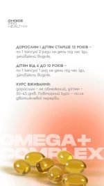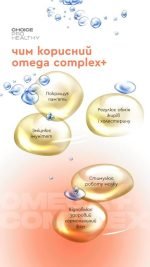 Організм людини не синтезує омега-3, тому їхнє надходження з їжею життєво необхідне. OMEGA COMPLEX + — це повноцінне джерело ПНЖК із тунцевого жиру та рослинних олій льону, гарбуза й пшениці. У складі — омега-3 (ДГК, ЕПК, АЛК), омега-6 (ГЛК, лінолева) та омега-9 (олеїнова), які забезпечують здоров’я серця, судин, мозку, гормонального фону та шкіри.