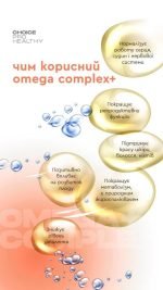 OMEGA COMPLEX + — джерело незамінних жирних кислот омега-3, -6 і -9 із жиру тунця, олії льону, гарбуза та зародків пшениці. Підтримує роботу мозку, серцево-судинної системи, знижує холестерин, покращує пам’ять і стан шкіри. Натуральна формула — без важких металів та домішок.