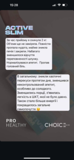 Актів слім мені дуже сподобався, реально не хочеться їсти десь з 2го тижня відчула, спочатку думала що фігня. Прям стала менше їсти, тому думаю точно схудну.Раджу спробувати.