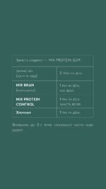 Mix Protein SLIM — функціональний білково-вітамінний коктейль для тих, хто хоче інтенсивно знизити вагу, зберігши енергію, гарний настрій і красу. Він містить 20 амінокислот (у тому числі ВСАА), клітковину, повільні вуглеводи, пробіотики, вітаміни групи B, хелатні мінерали, потужні антиоксиданти та 12 активних жироспалювачів, включно з L-карнітином, CLA, МСТ, коензимом Q10, форсколіном і хромом піколінатом.